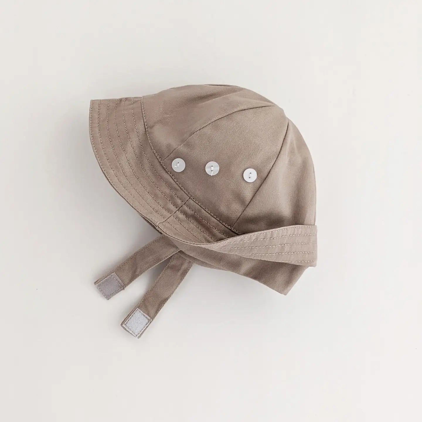 Perfect for year-round wear, this upf 50+ hat is functional and so handsome! Made in sand-colored twill, it has a flap to cover the neck and ears to protect from the wind. Three little buttons accent the crown. Made in an easy-care cotton and fully lined for comfort. 100% cotton. Cold hand wash, lay flat to dry.